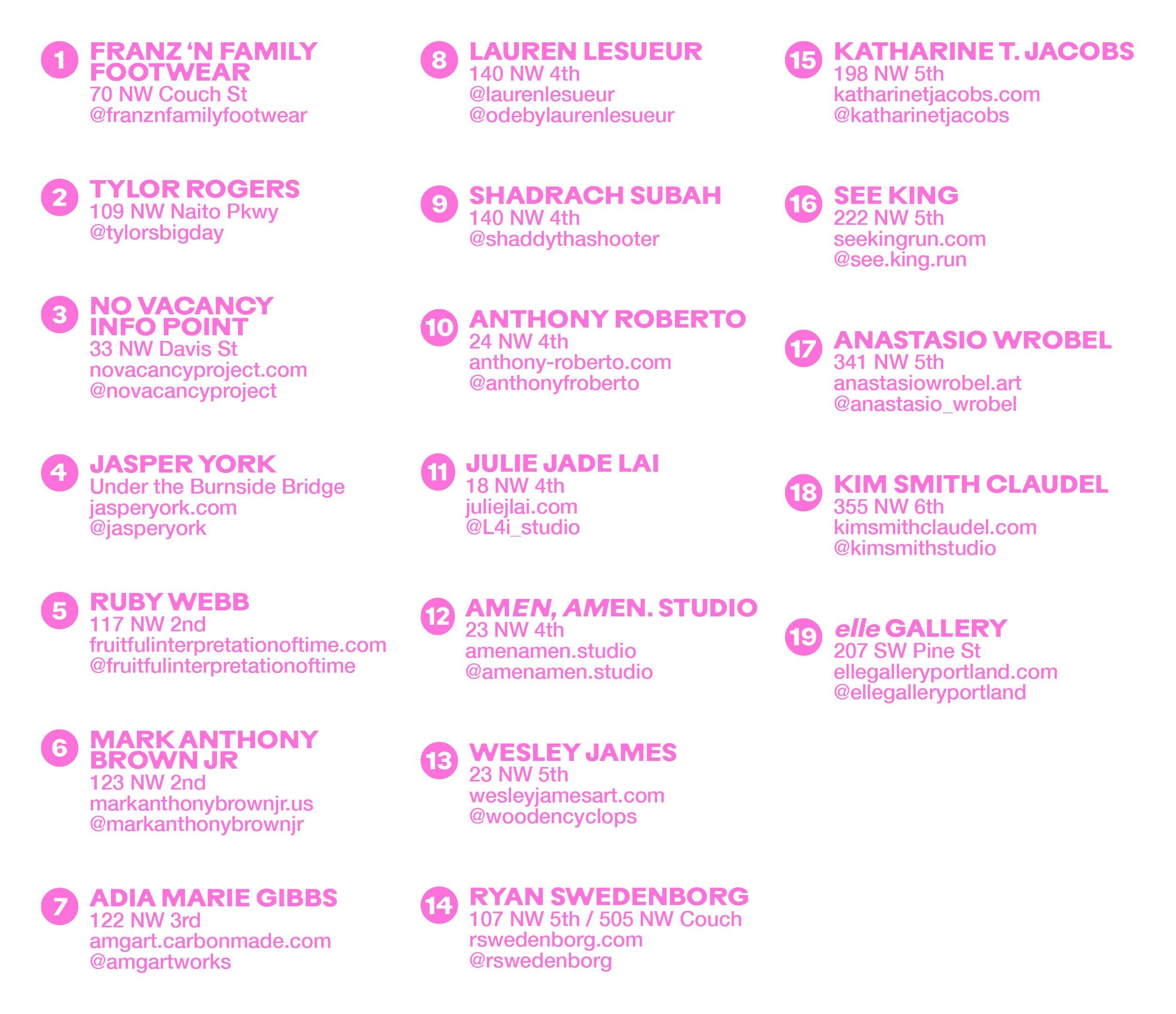 The No Vacancy Window Gallery is a collaboration between the Old Town Community Association, elle Gallery, and Field States. Together, we are creating a bold new model for culture-driven streetscapes, proving that art accessibility and economic development can work hand in hand to create lasting positive change in Portland.